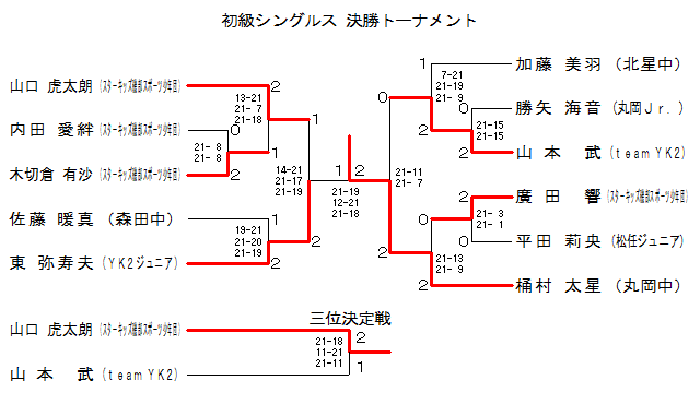 | ‰Á“¡ ”ü‰H (–k¯’†ŠwZ) | @ | › 21-11 21-16 | › 21- 7 21- 5 | ‚P |