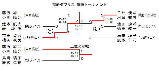 | MD4-5 | ‰Á‰êŽsJr. | Žs“c —œ”TE‰±’J •–‰Ä | ‚Q | 15-13 15-12 | ‚O | “ú”ä —D“lE‰Í‡ ŠÏŠó | ‘åŠ_×¢”N’c | |